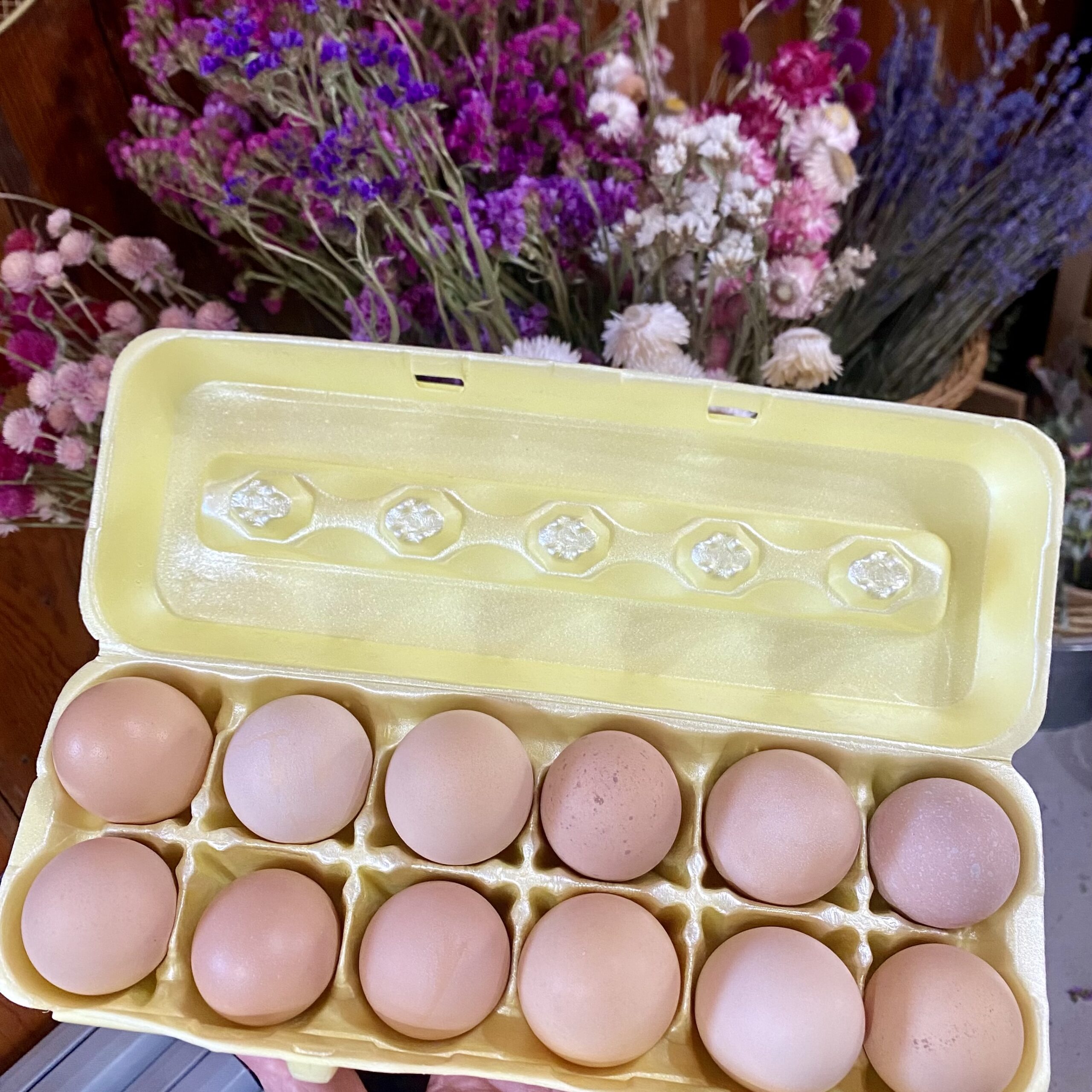 1 dozen (12 eggs) – Farm fresh, pastured raised, non-GMO fed chicken eggs